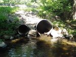 highly rusted on bottom. Several fish congregated and trapped below culvert.