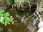 Secondary culvert .21M above inlet water level. Primary runs 2m before draining into a catch basin. Primary outlent is fully submerged.
