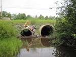 Fill: 1.2m. Ponding downstream. A lot of good-sized fish. Homeowners have made a concrete dam downstream totally blocking flow to create a pond.