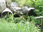both culverts go slightly uphill, then downhill, so no flow but water at inlets; some flow through culvert 1, but going through holes in culvert rather than out the outlet