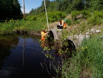 40 ft downstream from outlet is beaver dam- prevents substrate and tailwater pool observations, fish, 20 ft upstream woody blockage, looks like recent flooding