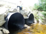 100 METERS UPSTREAM BRIDGE LIKE STRUCTURE ON PRIVATE PROPERTY WITH FENCE...PHOTO... APPEARS TO BE BLOCKED...COW PASTURE UP AND DOWNSTREAM