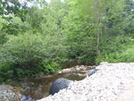 small built dam upstream- pile of rocks upstream