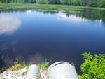 Saved a turtle that was trapped in fishing line upstream. Fish present downstream (bass). Aquatic snake (brown/black, >0.5m long, NOT a garter snake) present downstream.