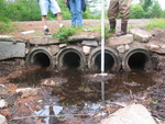 Potentially Impedes AOP. Measurments were done on the culvert to the left, looking downstream.