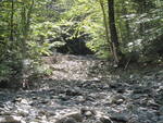 Barely a trickle through both culverts. The stream bed is boulders and cobbles with the water percolating through.