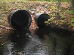 Upstream ripples. Secondary culvert is plastic, primary is metal. Outlet drop is estimated.