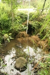 Pond and wetland immediatley upstream. Hay dumped at outlet.