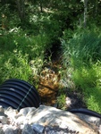 First culvert metal, second and third are plastic Fill height, condition, and tidal site not recorded. 2 distinct inlet streams (separate) at right angles. one at 3.9 feet is metal, two at 2x4 feet are plastic. flow to single outflow.