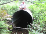 Fill: 0.42m. Inlet/outlet are metal type 1, and center is concrete type 4. While inlet is "at stream grade" there is a significant space underneath it into which water is flowing. Outlet is just BARELY at stream grade.