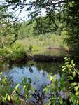 both culverts blocked by beaver debris at entrance; school of fry above beaver debris at inlet; upstream wetland; bank height above culvert 1.10m
