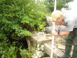 Potentially Impedes AOP. Measures taken on the left culvert looking downstream; Bankful not measured as would have had to go pretty far away upstream; Culvert pretty close to section 1 (B2), can't measure distance though.