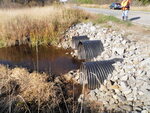 Significant road deposits downstream. .8' drop from culvert outlet cascade to stream bottom.