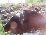 wooden boards make up the bottom of the structure. With substrate in between the boards. Crayfish.