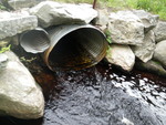 Oval shaped culvert. Water is sucked into inlet. Lip of inlet curled. Head pond/swamp- cannot see what the upstream substrate is.