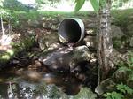 Small rock dam across stream 12 ft downstream of culvert; Water going under culvert