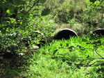 Fill: 1m. Boards are shoved in the inlet and it is totally overgrown making measurments impossible. Outlet is 25% blocked. Lots of snails and lots of fish. Inlet is so overgrown it is hard to even see culvert.