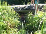 bottom of culvert rotted out at inlet. It is flipped upwards creatng a blockage. Small dam past outlet (buildup of rip rap).