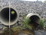 RR culvert raised 1' at outlet and 3' at inlet; fencing in pipe inlets