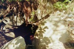 inlet blocked by large rocks; huge beaver dam approx 15-20 feet upstream