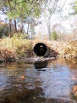 Outlets to river. Inlet appears perched about 1'. Kink inside under the road. Debris blocked measurements. Appears to be manmade plunge pool at outlet,