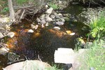 upstream side is a bridge. extended with 2 culverts on downstream end. cement between culverts, width of both culverts = width of bridge