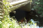 upstream side is a bridge. extended with 2 culverts on downstream end. cement between culverts, width of both culverts = width of bridge