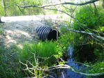 Forested wetland up and downstream. Downstream filled with cobble (old roadfill) impeding flow.