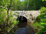 Forested wetland up and downstream. Downstream filled with cobble (old roadfill) impeding flow.