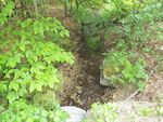 rusted through 2m back from outlet & 1m from inlet-water empties through rusted holes; drainage culvert 25' up road; road recently repaired; other photos: 8576-InletRusted, 8576-OutletErosion, 8576-OutletRust, 8576-RoadWork; bank ht. abv. Culvert 0.4m