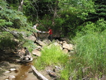 Potentially Impedes Aop. Inlet hiden by sedimentation, wood debris and vegetation, water going under soil; outlet = rocks (see pics)