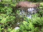 Large pile of brush in stream 30 ft upstream.; Bottom half of culvert rotted out at inlet and outlet.