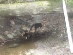 crossing structure length estimated because of steep embankments/wooden structure above culvert.