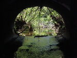 Metal culverts extendind from both ends of rock abutments. Timber bottom along rock abutments. Structure span is 2.33M at rock abutments.