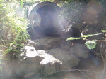 has a cascade/large rocks at outlet but water goes down straight and not over the rocks. Pipe sections disconnected and water leaves before outlet.