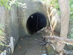 cement abutments and bottom at inlet and outlet. Log blocking inlet causes inlet drop. Looks like it will dry up, may be intermittent. Continuous under road sections. One site, coordinates at center meridian.