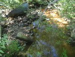 Minnows. Outlet is severly deformed, bottom is completely gone. Completely immpassable to fish. Large stone pieces surrounding culvert.