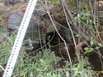 severley deformed- crushed by giant boulders and rusted bad. Bad silt deposit from airport. Possible secondary culvert- crushed.