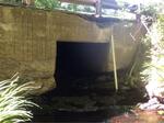 The outlet armoring is natural & has a free fall drop of 2.1 to stream bottom see photo; inlet has a 2' overhang the measurements are of inside