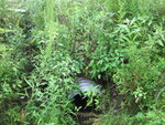 Fill: 0.8m. Large pond downstream (created by dam downstream). Bottom of outlet is rusted out and last ~5m of culvert is exposed, so water is emptying out of culvert earlier on- water is still moving through culvert.