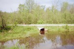 inlet blocked with beaver sticks and mud; significant road gravel and debris jam downstream