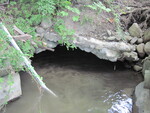 Fill: 0.95m. Specific structure type & measurements are best guesses- culvert is falling apart and it is hard to tell. Streambank once lined w/ concrete, now falling apart. Very blocked/clogged inlet, eroding streambanks & upstream embankment.
