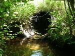 Underground springs, inlet 5" above stream bottom with concrete shelf, juvenile trout upstream