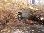 deformed inside. Dam directly above culvert. Severe erosion downstream!