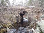 Stone dam remnants 100-200 ft upstream, including abutments