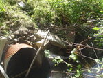Both culverts severly rusted. Bottoms of both culverts are gone. Need to be replaced. Stuff in middle clogging secondary for fish passage. Possibly old box culverts with type one put in.