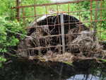 inlet round metal culvert changing to concrete box culvert (outlet) about 40 percent thru the length. inlet drop caused by blockage. abutment at outlet. may be intermittent. may be branch of Knights brook.