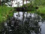 inlet round metal culvert changing to concrete box culvert (outlet) about 40 percent thru the length. inlet drop caused by blockage. abutment at outlet. may be intermittent. may be branch of Knights brook.