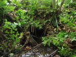 pipe half filled with sediment on outlet side. May be intermittent stream.
