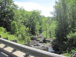 Natural armoring- bedrock. Stream splits upstream- one channel carries majority of flow. Small waterfalls downstream.